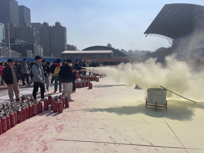 演练过程中,校公安处工作人员为师生详细讲解消防安全知识及消火栓、灭火器的正确使用方法,并让师生体验了模拟烟雾逃生的全过程,现场演示了如何正确使用灭火器进行初期火灾扑救并让师生进行了灭火器的实操演练。