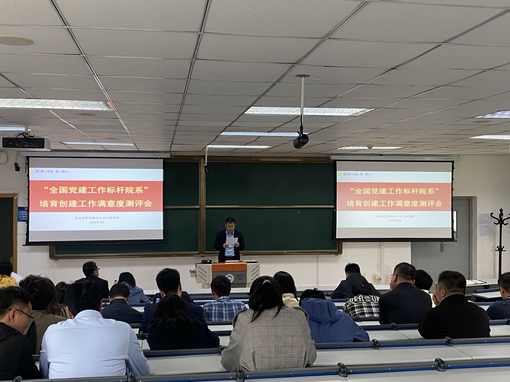 4月24日下午,资源与土木工程学院在采矿馆201室召开“全国党建标杆院系”创建工作满意度测评大会,学院领导班子成员、党委委员、教职工党支部书记、党内外师生代表参加会议。测评大会由校党委组织部副部长、教师工作部副部长(兼)亓红强主持。亓红强介绍了本次大会的背景及目的,并讲解了测评方法。