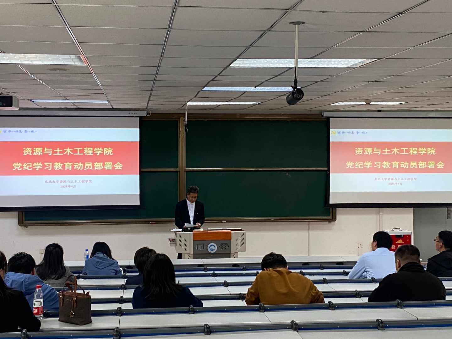 4月24日下午,资源与土木工程学院在采矿馆201室召开党纪学习教育工作部署会,学院领导班子成员、党委委员、支部书记、组织员参加会议。
