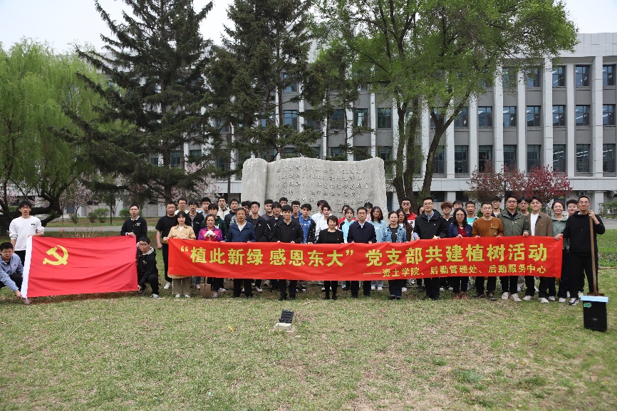 4月26日中午,资源与土木工程学院、后勤管理处和后勤服务中心联合开展“植此新绿 感恩东大”党支部共建植树活动。后勤管理处副处长李季、校园环境管理科张毅、于洋,资土学院党委书记艾国生、党委副书记、副院长(兼)刘婉婷出席活动。资土学院学生工作办公室教师和2024届本科毕业生党员参加植树活动。