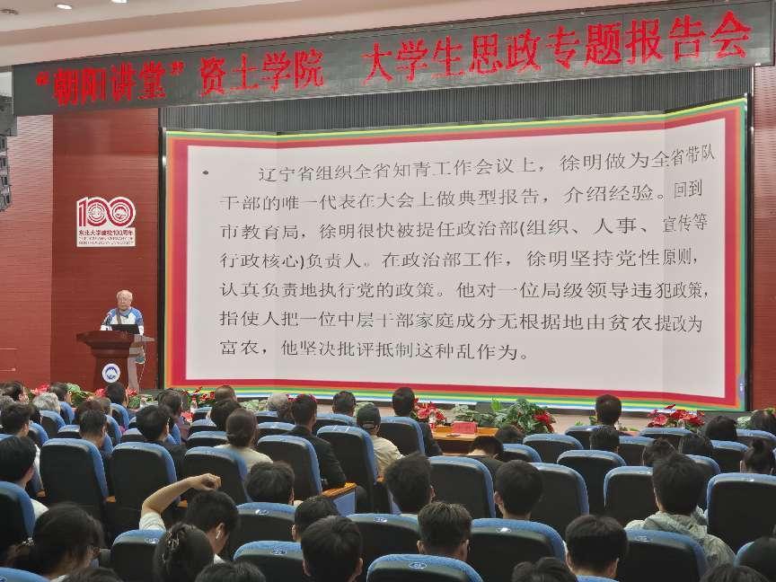 5月17日晚,学院“朝阳讲堂”大学生思政专题报告会在科学馆201顺利举行。本次报告会由学院党委主办,学院关心下一代工作委员会、工会、团委共同承办。报告会围绕学院杰出校友代表、东北大学校董会董事、69届采矿系校友徐明教授的先进事迹展开,邀请东北大学关心下一代工作委员会常务副主任窦盛功教授担纲主讲嘉宾。辽宁省贸促会原会长、东北大学沈阳校友会终身名誉会长李瑞,辽宁省委宣传部原副部长葛本亮,东北大学沈阳校友会常务副会长刘继宁,东北大学老五届校友联谊会联络员代表和部分老五届校友应邀莅临现场。东北大学创新创业学院常务副院长李鹤、离退休工作处党委书记刘勇受邀出席活动,学院300余名师生到现场参加,学院党委书记艾国生主持报告会。