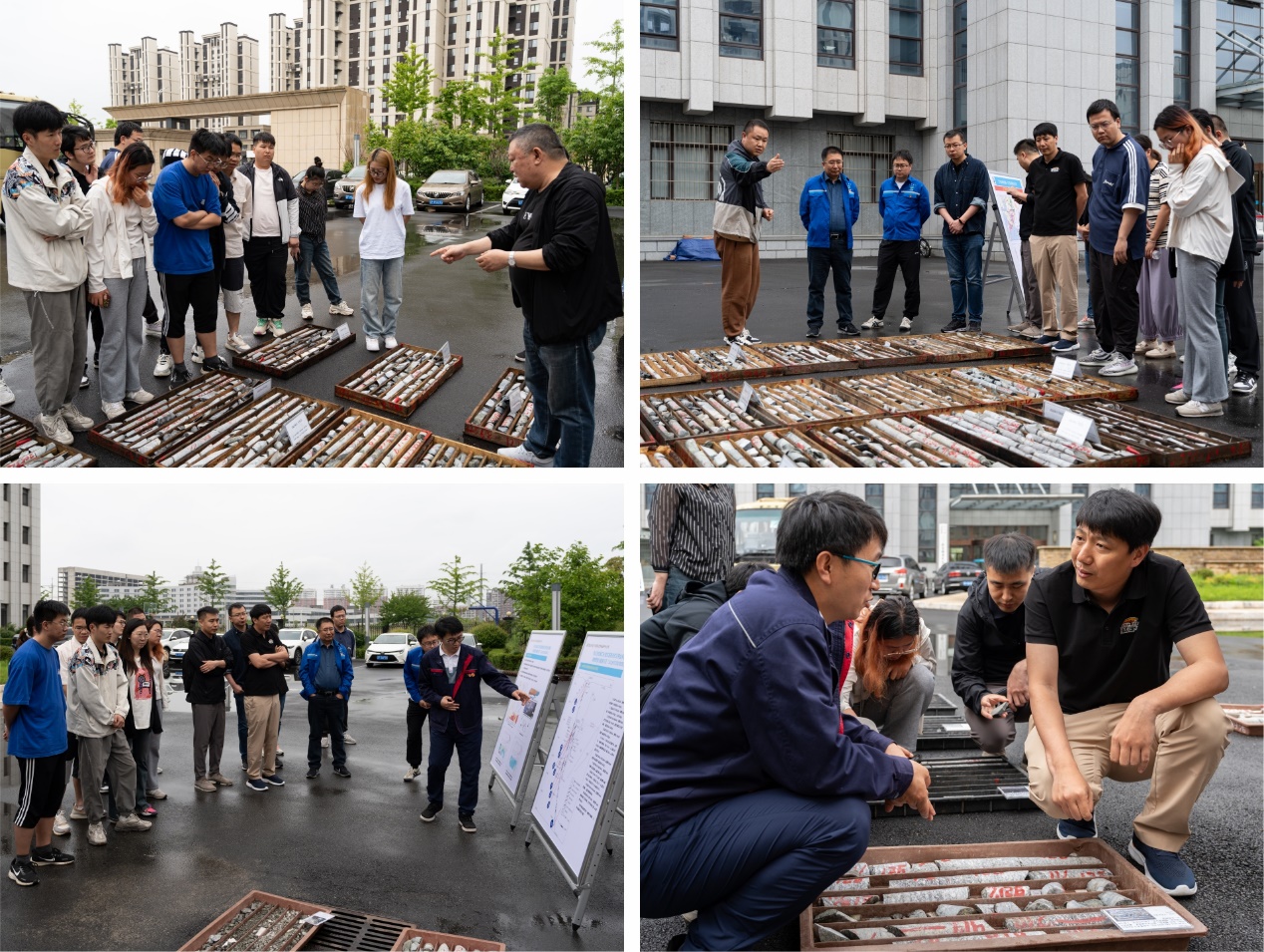 会后,田树海向地质系师生介绍了团队在宽甸县秋果碧金矿的找矿成果,展示并讲解了岩心样品。一〇三队地勘二处处长邱金柱展示了珍贵的3000米科研钻探岩心样品,并讲解了在承担国家重点研发计划深地资源开采专项中所取得的研究成果。