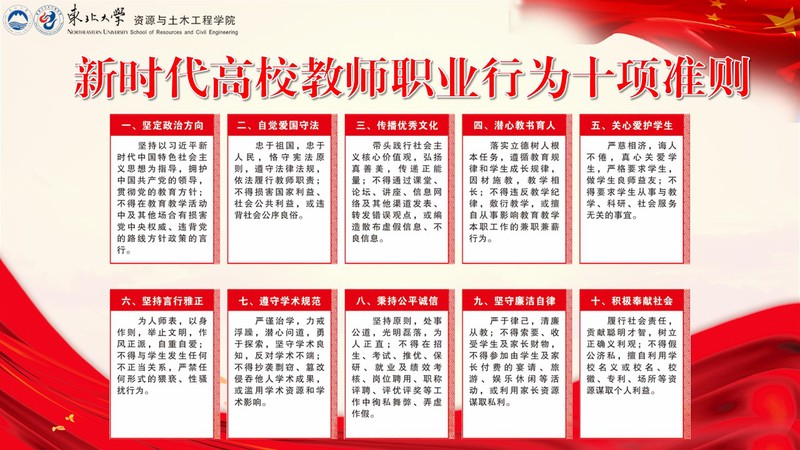 八、秉持公平诚信。坚持原则,处事公道,光明磊落,为人正直;不得在招生、考试、推优、保研、就业及绩效考核、岗位聘用、职称评聘、评优评奖等工作中徇私舞弊、弄虚作假。