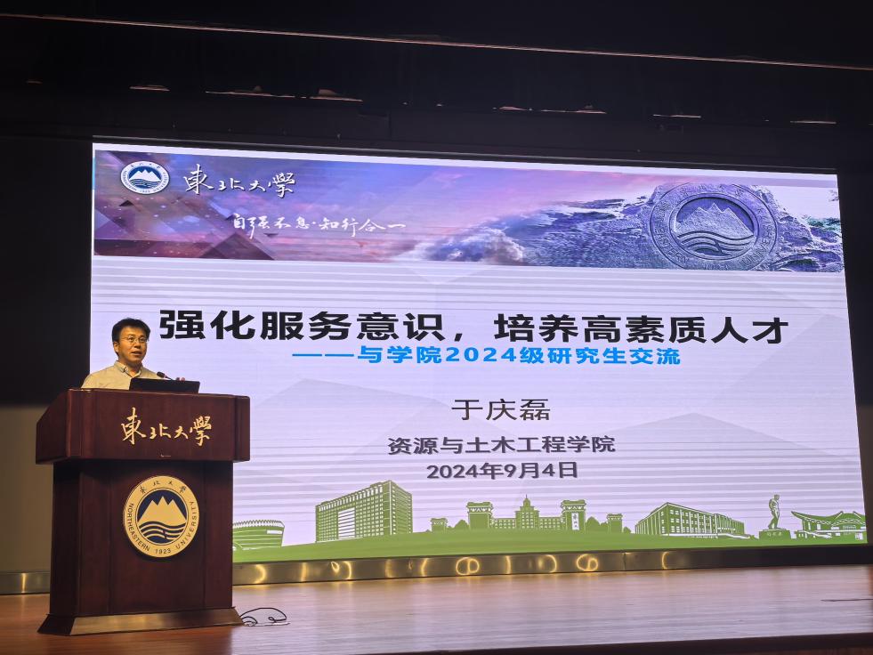 在开学第一课上,于庆磊以“强化服务意识,培养高素质人才”为题,分别从青年人的使命担当、研究生教育面临形势、学院历史沿革、研究生科研能力培养等方面,向2024级研究生做了详细的介绍,并结合多年来的研究生培养经验,勉励同学们继承并发扬“五四煤”精神和“可可托海的东大人”精神,在各个领域展现资土人的风采。
