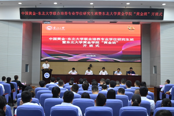 9月10日上午,中国黄金-东北大学联合培养专业学位研究生班暨东北大学黄金学院“黄金班”开班式在南湖校区综合楼822会议室顺利召开。中国黄金集团副总经理姜良友,东北大学党委常委、副校长王强,以及中国黄金集团科技创新部总经理龙涛、集团党委组织部组织干部处处长梁岩、战略管理部综合研究处处长方文田、科技创新部创新成果应用处处长王伟,东北大学黄金学院理事会秘书长王恩德教授,东北大学研究生院副院长吴政新,资源与土木工程学院院长朱万成、党委书记艾国生、党委副书记兼副院长刘婉婷、副院长于庆磊、包妮沙,冶金学院院长豆志河、副院长姜鑫、刘中秋出席开班式,中国黄金集团在职员工、东北大学黄金学院“黄金班”学生共110余人参加开班式。