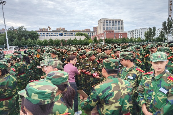 按照学校武装部的安排部署,学院扎实开展军训工作和新生国防教育,教育引导新生爱党爱国爱军,高质量完成2024级学生军训工作。在中秋节前,学院党委书记艾国生、党委副书记兼副院长刘婉婷到训练场看望参训学生和承训教官,发放月饼等慰问品,对新生努力刻苦的训练态度予以肯定,并向教官表达感谢和敬意。