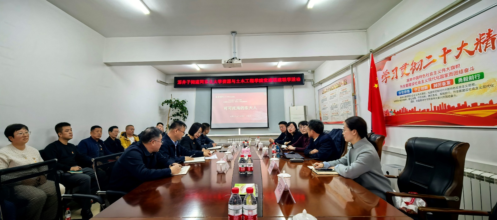 11月11日下午,学院前往深井子街道开展党建联建联学活动。深井子街道党工委书记富峣、主任李楠、学院党委书记艾国生、党委副书记(兼)副院长刘婉婷、环境工程系党支部书记李英华、安全工程系党支部书记刘正东以及其他相关人员参加了此次活动。