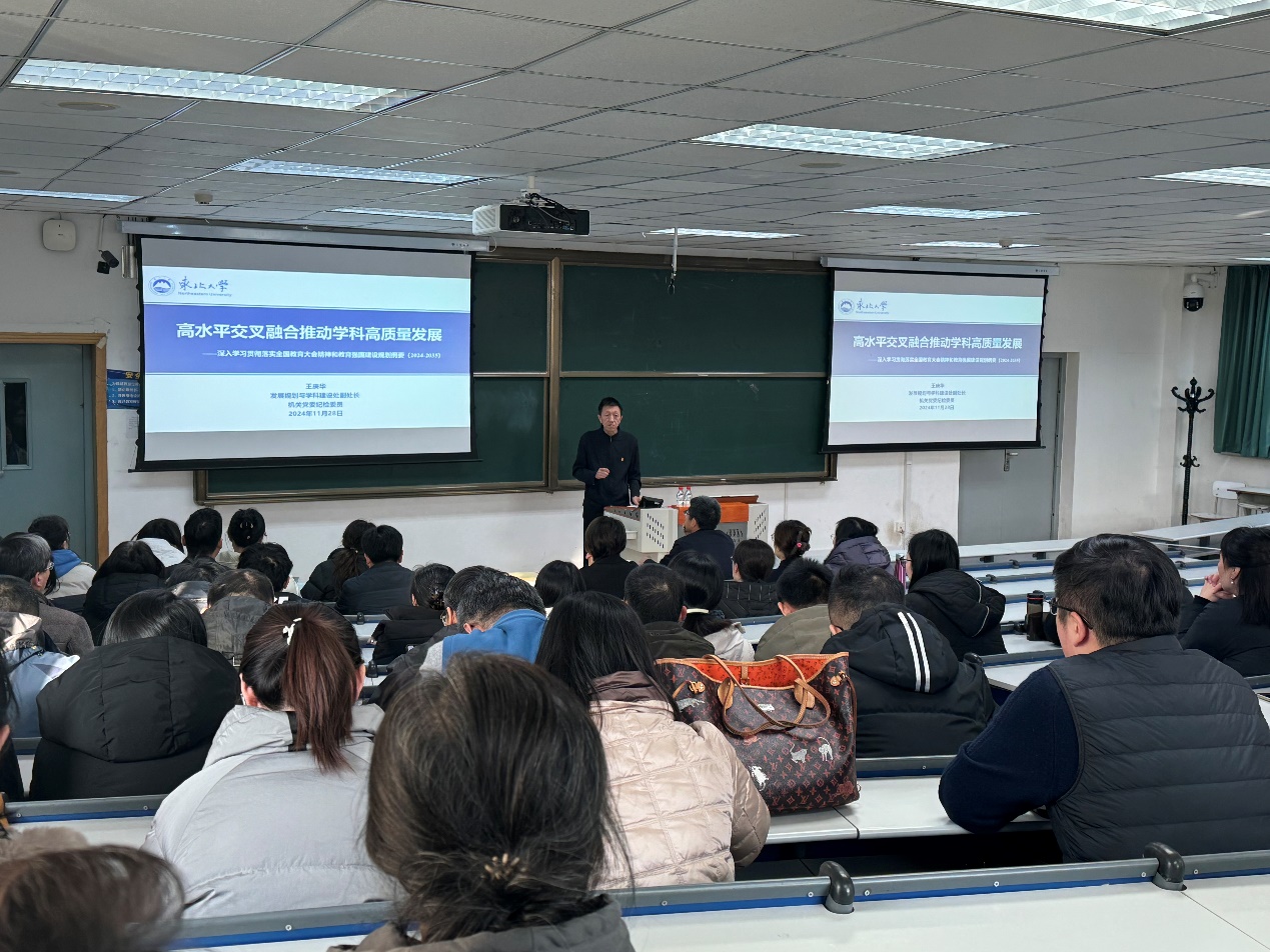 2024年11月28日,我院于采矿馆201室举行党委理论学习中心组(扩大)学习暨全国教育大会精神宣讲会,特邀东北大学机关党委纪检委员、发展规划与学科建设处副处长王庚华开展专题宣讲,学院领导班子及师生代表百余人参会。