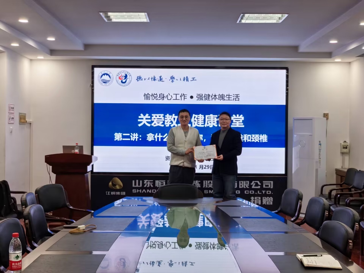 11月29日下午,我院在采矿馆227室成功举办了第二场关爱教工健康讲堂——拿什么来拯救你,我的腰椎颈椎。本次讲座由中国医科大学附属盛京医院副教授、副主任医师周隆主讲,学院工会主席赵鑫主持。