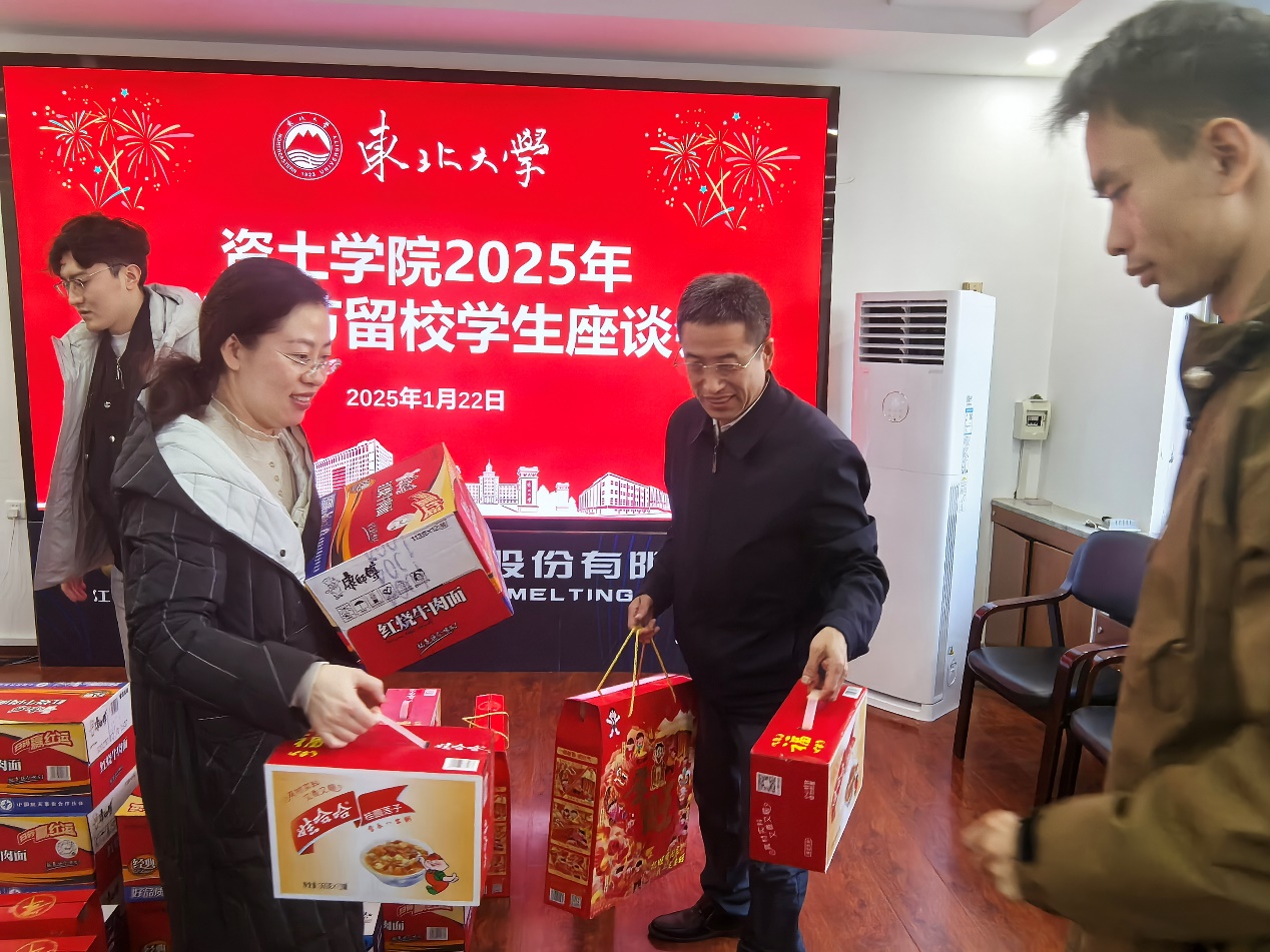 座谈会最后,学院为全体春节留校学生送上了年货礼包,并送上了诚挚的新春祝福。