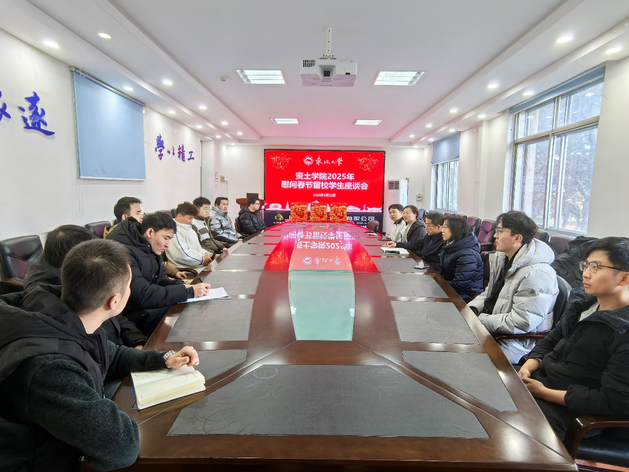1月22日上午,农历乙巳蛇年春节即将到来之际,学院在采矿馆227召开了慰问春节留校学生的座谈会。学院党委书记艾国生出席此次活动。座谈会由学院党委副书记、副院长(兼)刘婉婷主持,学生工作办公室教师及十余名留校学生参加此次会议。