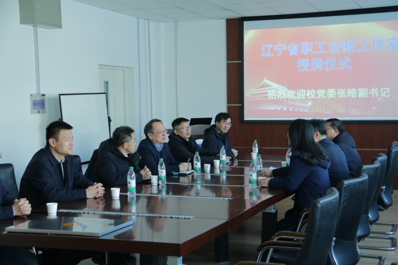 3月5日上午,“辽宁省职工创新工作室”授牌仪式在老校部348举行,校党委副书记张皓、校工会主席沙海影、副主席张琦,学院院长、获奖团队负责人朱万成、学院党委书记艾国生以及获奖团队教师代表共同出席了此次仪式。