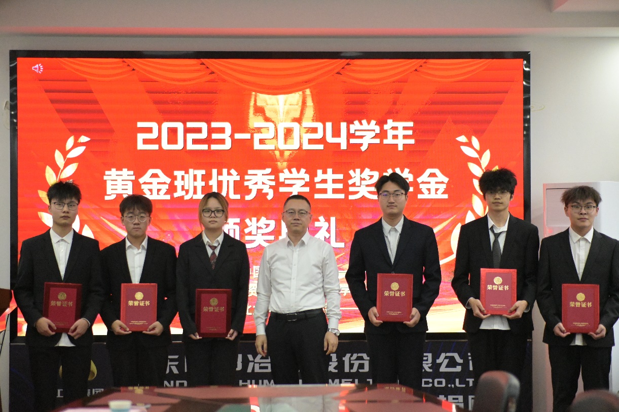 豆志河指出,中国黄金集团与东北大学自2024年联合开办东北大学黄金学院“黄金班”,是响应深化产教融合、服务国家战略的重要举措,为学生的就业成才提供了广阔的平台。同时祝贺了东北大学2023-2024学年“黄金班”优秀学生奖学金的获奖同学,希望全体“黄金班”同学刻苦钻研,再攀高峰。