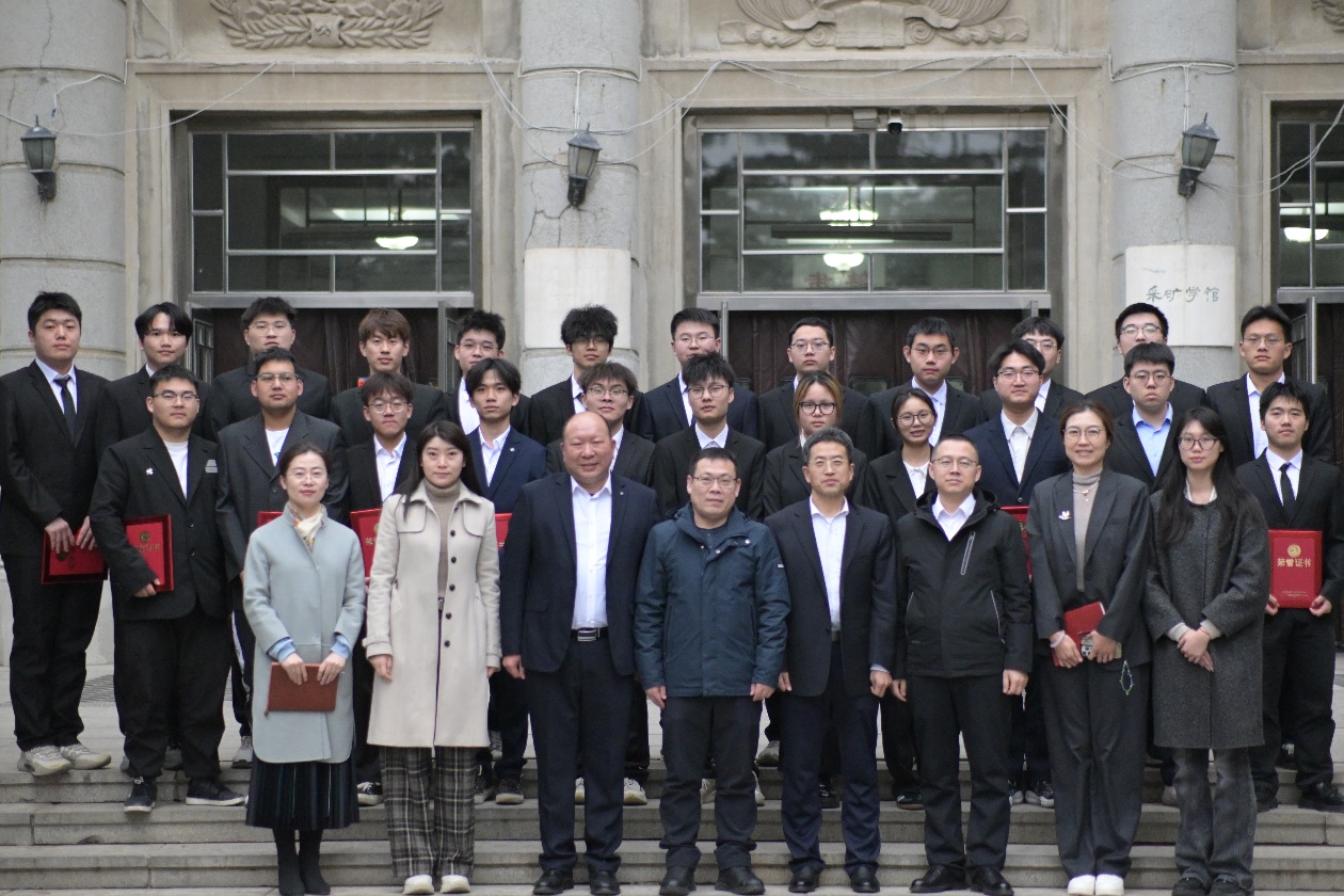 会后,东北大学黄金学院“黄金班”获奖学生与双方领导合影。