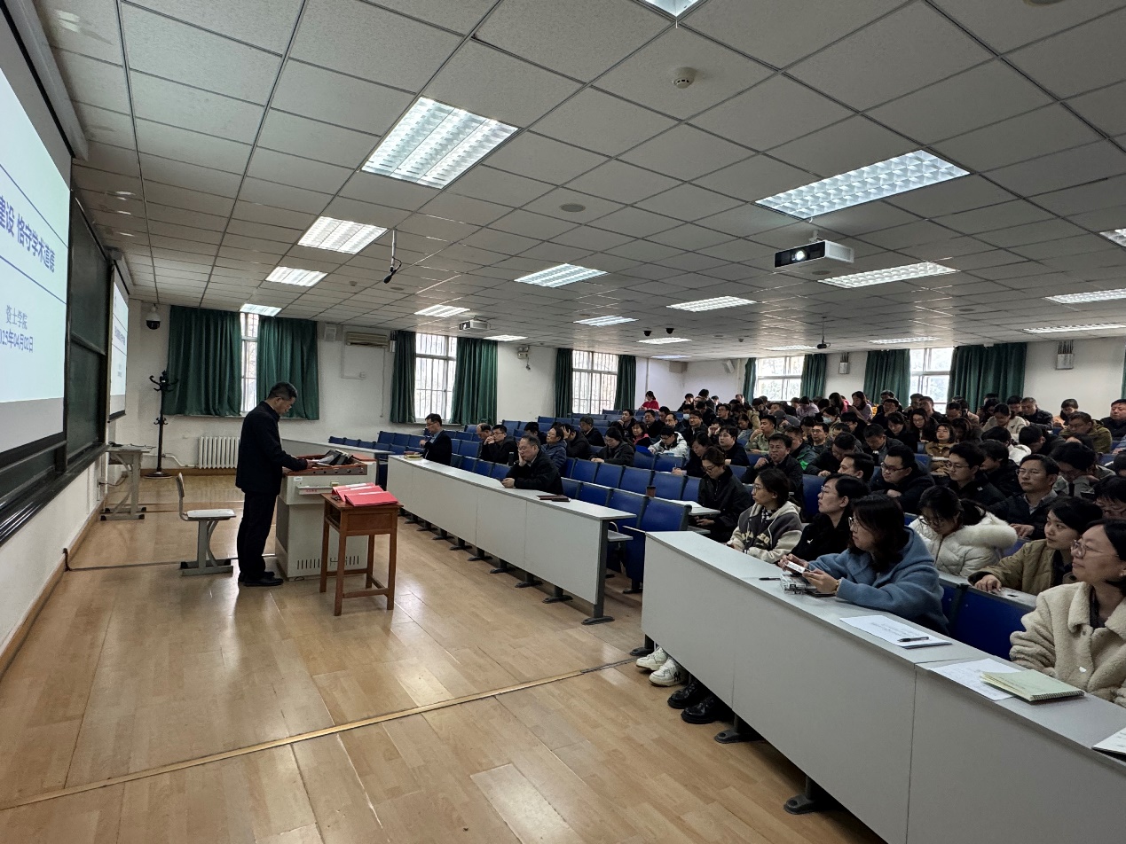 随后,艾国生以《强化诚信建设,恪守学术道德》为题做专题报告,报告中借助大量详实的警示案例,从制度建设、联合惩戒、监督检查、常见问题及宣传教育等五个维度,系统阐释学术诚信体系构建的紧迫性与重要性。他强调,学术道德是科研工作者的立身之本,学院将通过完善学术规范、加强过程监管、强化师德考核等措施,营造风清气正的学术生态。