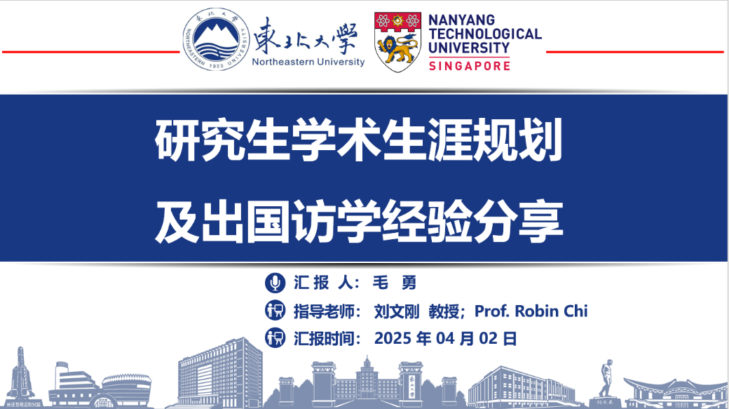 论坛邀请了博士研究生毛勇和硕士研究生王邺两位汇报人,分别围绕自身在矿业与土木工程领域的研究成果进行了精彩分享。汇报人毛勇是矿物加工工程专业博士研究生,以第一作者或通讯作者身份发表学术论文12篇,申请及授权发明专利3项,曾获得研究生国家奖学金、CSC留学奖学金等荣誉,目前在新加坡深造,拥有丰富的论文写作和留学经验。毛勇以“研究生学术生涯规划及出国学术经验分享”为题,详细介绍了自己在矿物加工领域的研究成果,特别是在低品位矿石处理和浮选药剂研发方面的创新进展。他不仅分享了矿业学科的最新研究动态,还传授了宝贵的论文写作经验。此外,毛勇还结合在新加坡留学的经历,为在场的研究生们提供了许多实用的学术生涯规划建议,帮助大家更好地规划未来学术道路。