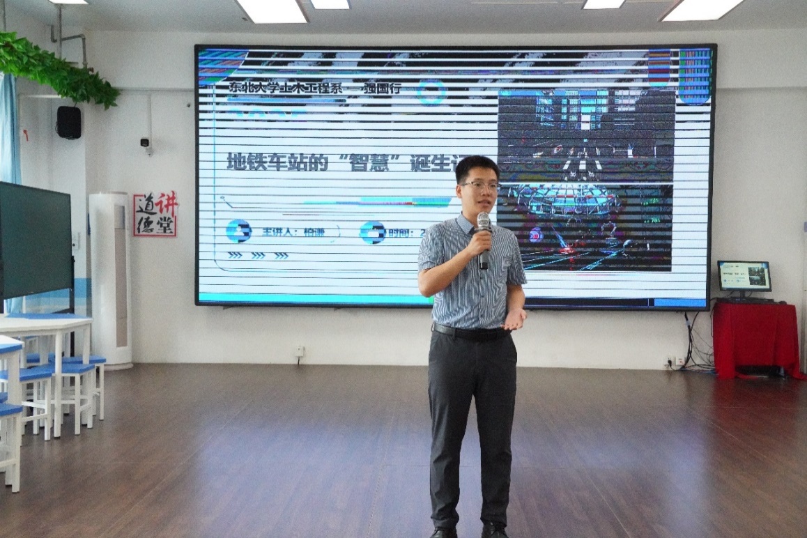 9月1日,在东北大学资源与土木工程学院党委领导下,土木工程系党支部深入贯彻落实全国高校“双带头人”教师党支部书记“强国行”专项行动,支部党员柏谦为望湖路小学的学生们做题为《地铁车站的“智慧”诞生记》的科普教育讲座。