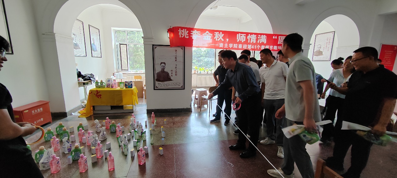 在第41个教师节来临之际,资土学院工会精心组织开展了“桃李金秋,师情满‘圆’”教师节趣味活动。学院教师积极参与,活动氛围欢乐温馨,使教师们感受到了学院党委的关怀与工会的温暖。