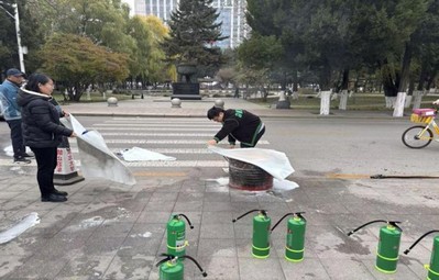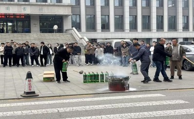 讲座结束后,消防应急演练随即开展。学院师生按照既定路线有序快速撤离至指定安全区域,随后参与了消防器材实操训练,公安处相关负责人现场讲解并演示了灭火器“提、拔、握、压”的正确操作步骤,强调了扑救初期火灾的关键注意事项,系统教授了灭火毯的使用方法,同时组织师生进行灭火实操训练。
